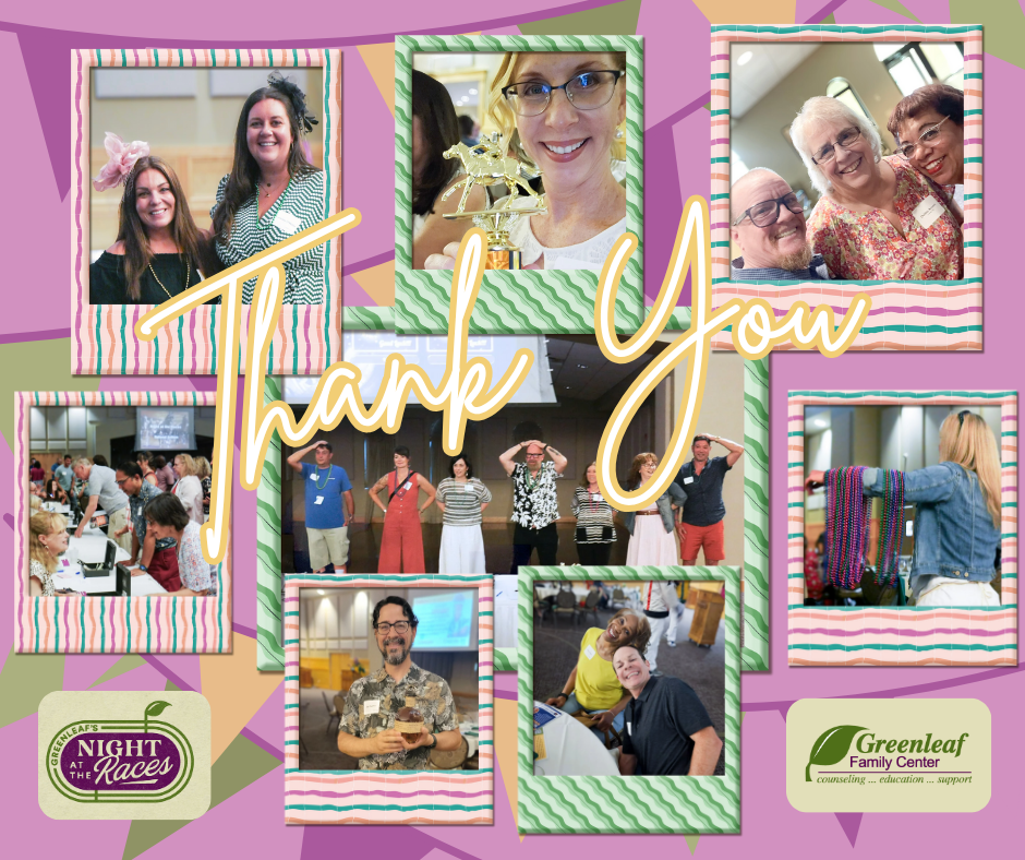 Not only did our close to 200 attendees have a fun night with friends and family taking part in horse racing, a bourbon pull (that was sold out in 30 minutes!), silent auction, heads and tails and much more, by the end of the night, Greenleaf donors, sponsors, and attendees had raised almost $47,000 in support of the essential programs Greenleaf offers to thousands of individuals in our community.